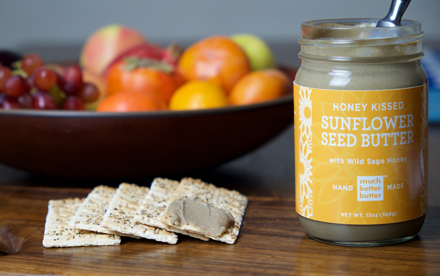 Ever since my son and daughter were old enough to shove food in their mouths, I have been making tasty, nutritional food with seasonal ingredients that the whole family can enjoy. Once my kids were in school it became more challenging to create delicious, protein rich food for lunch boxes. I created Much Better Butter™- a sunflower spread that the kids love. It's made with organic seeds that are perfectly roasted. Always peanut-free and school approved. Perfect for sandwiches, veggie dipping or just eating straight out of the jar!