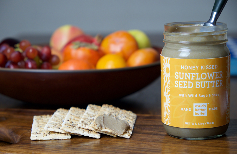 Ever since my son and daughter were old enough to shove food in their mouths, I have been making tasty, nutritional food with seasonal ingredients that the whole family can enjoy. Once my kids were in school it became more challenging to create delicious, protein rich food for lunch boxes. I created Much Better Butter™- a sunflower spread that the kids love. It's made with organic seeds that are perfectly roasted. Always peanut-free and school approved. Perfect for sandwiches, veggie dipping or just eating straight out of the jar!